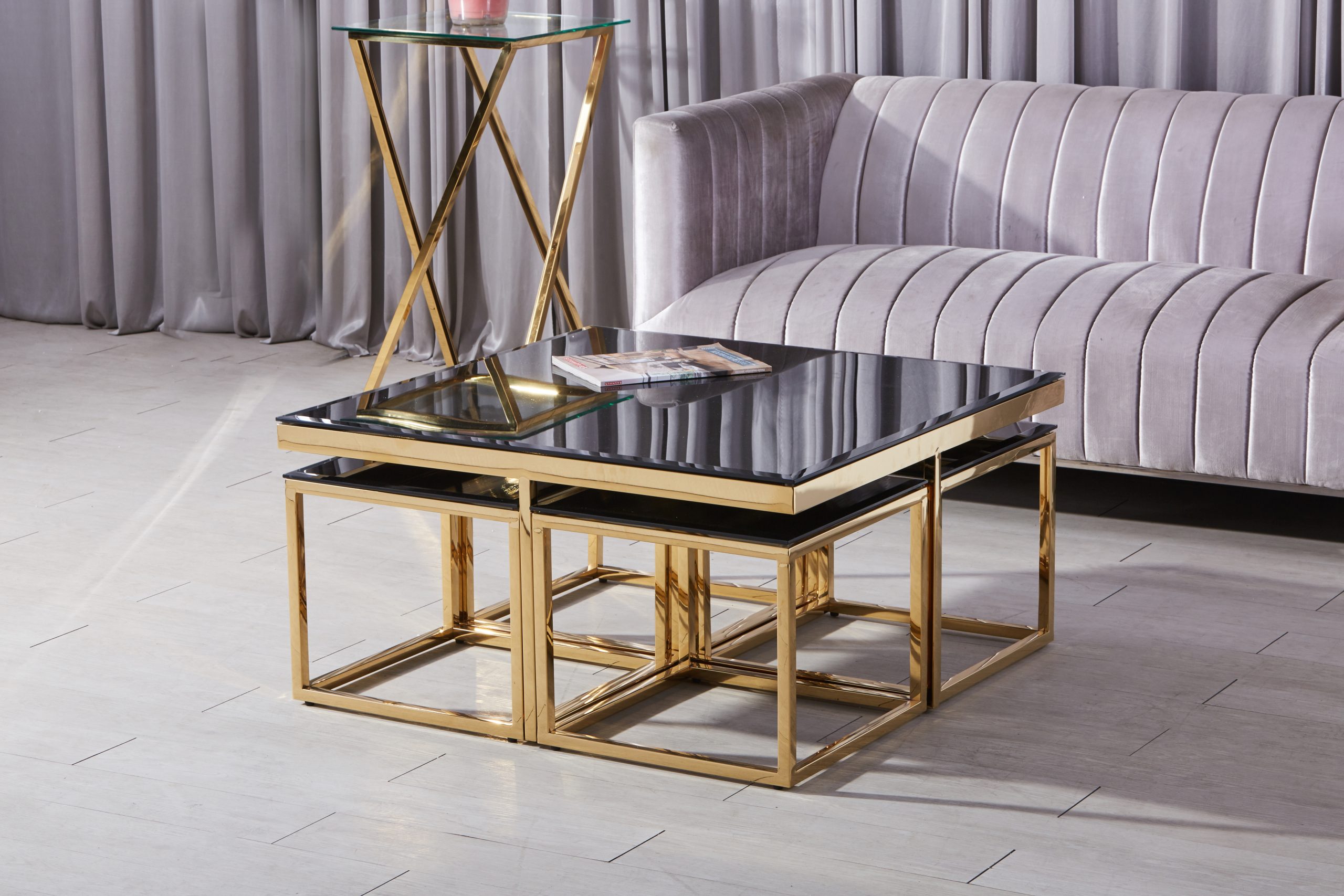 Entdecken Sie Luxus in seiner reinsten Form mit unserem Couchtisch. Erhältlich in vergoldetem oder verchromtem Gestell und mit 8mm starken ESG-Sicherheitsglas in Schwarz. Dieser Tisch vereint zeitloses Design mit Funktionalität und setzt ein glamouröses Statement in Ihrem Wohnzimmer. Wählen Sie Ihren persönlichen Stil und verleihen Sie Ihrem Zuhause mit diesem exquisiten Möbelstück einen Hauch von Eleganz. Gönnen Sie sich den Luxus, den Sie verdienen, und holen Sie sich diesen Couchtisch, der nicht nur praktisch, sondern auch ein echtes Designhighlight ist.