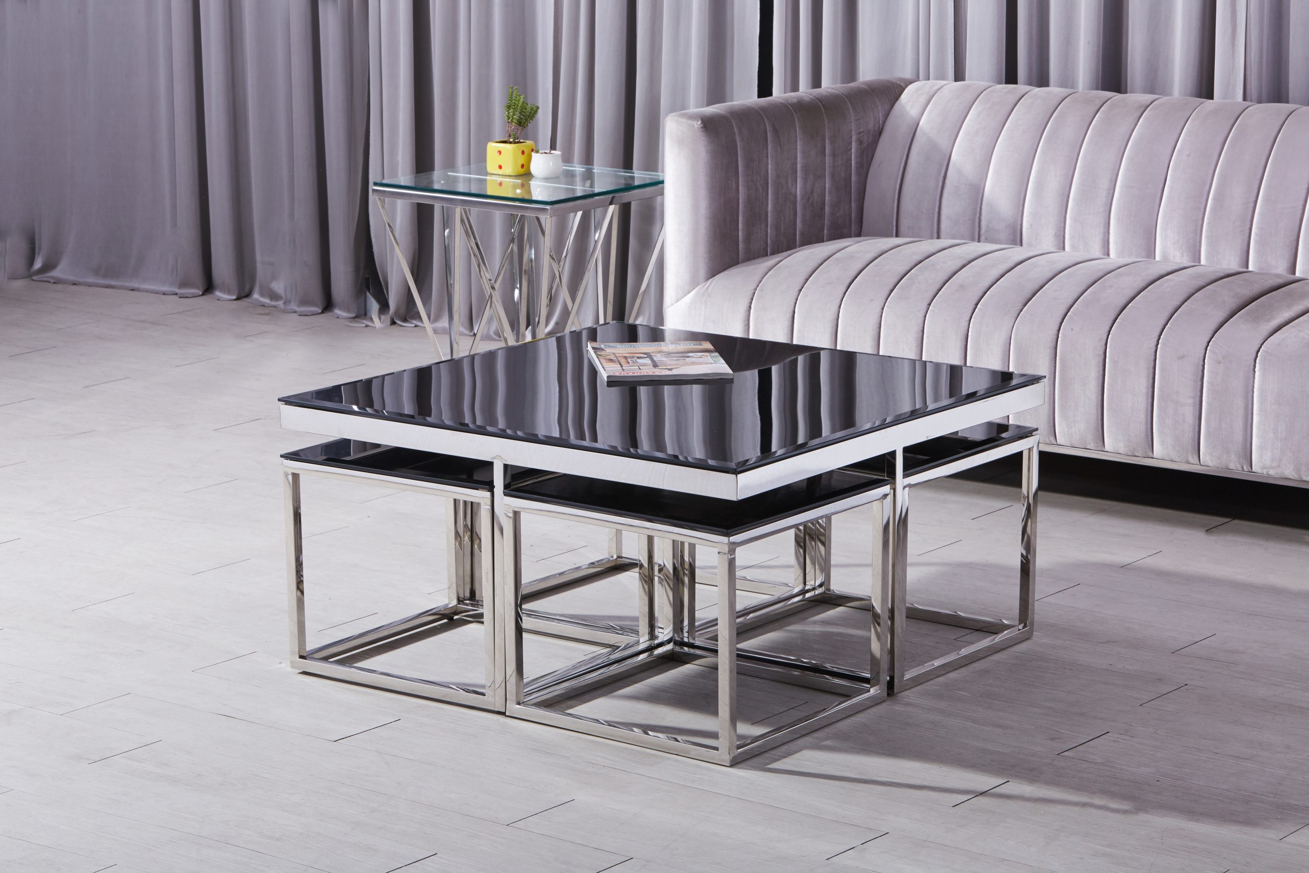 Entdecken Sie Luxus in seiner reinsten Form mit unserem Couchtisch. Erhältlich in vergoldetem oder verchromtem Gestell und mit 8mm starken ESG-Sicherheitsglas in Schwarz. Dieser Tisch vereint zeitloses Design mit Funktionalität und setzt ein glamouröses Statement in Ihrem Wohnzimmer. Wählen Sie Ihren persönlichen Stil und verleihen Sie Ihrem Zuhause mit diesem exquisiten Möbelstück einen Hauch von Eleganz. Gönnen Sie sich den Luxus, den Sie verdienen, und holen Sie sich diesen Couchtisch, der nicht nur praktisch, sondern auch ein echtes Designhighlight ist.