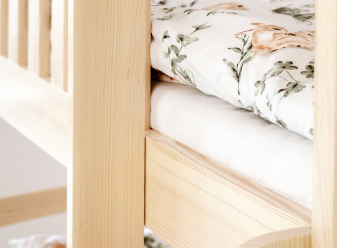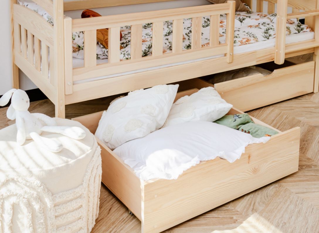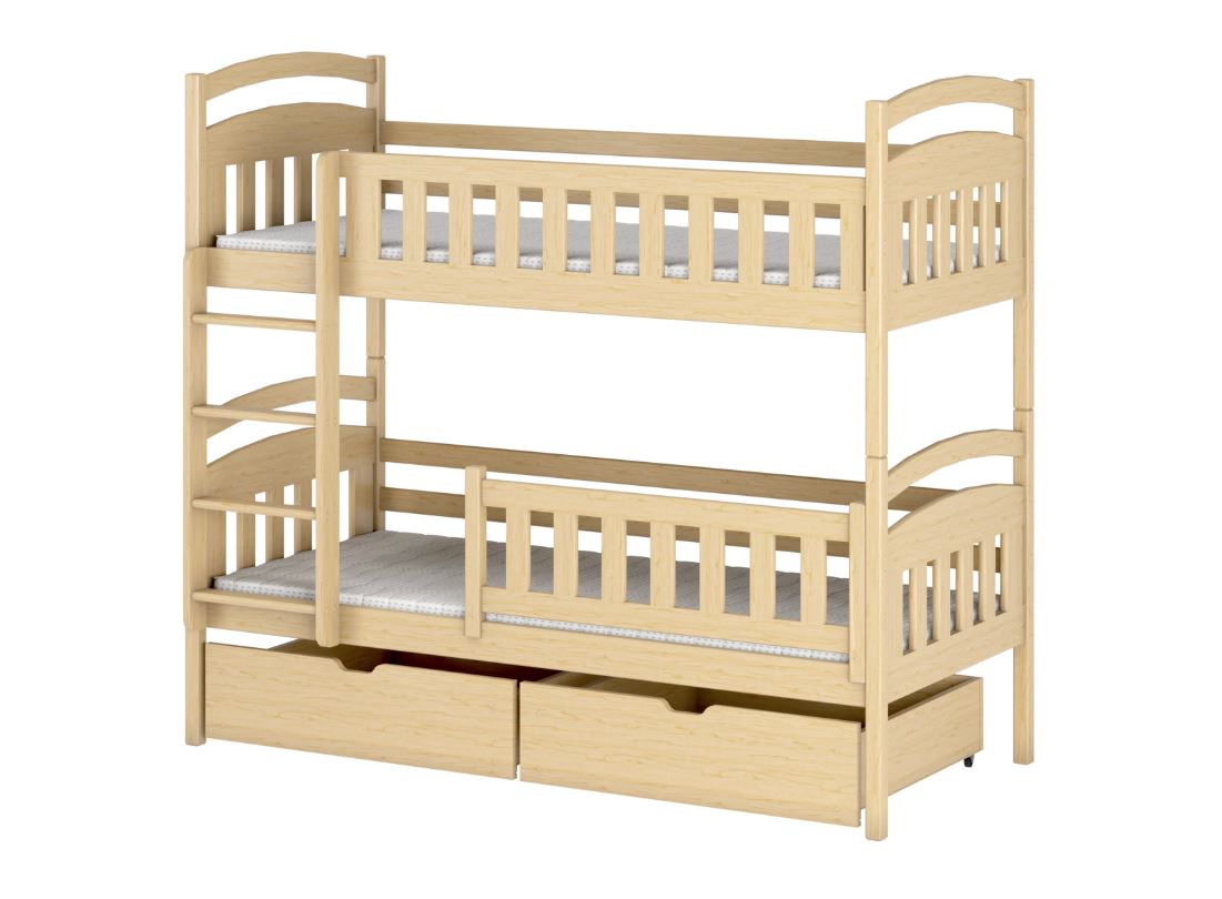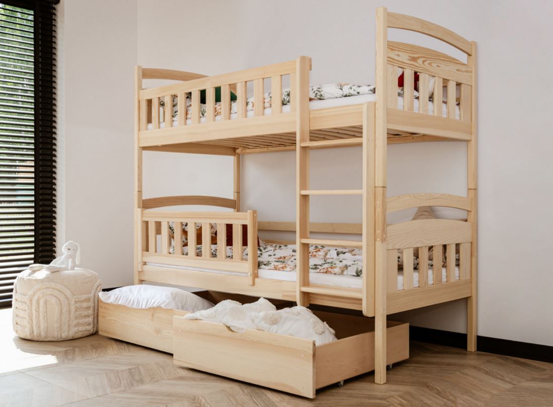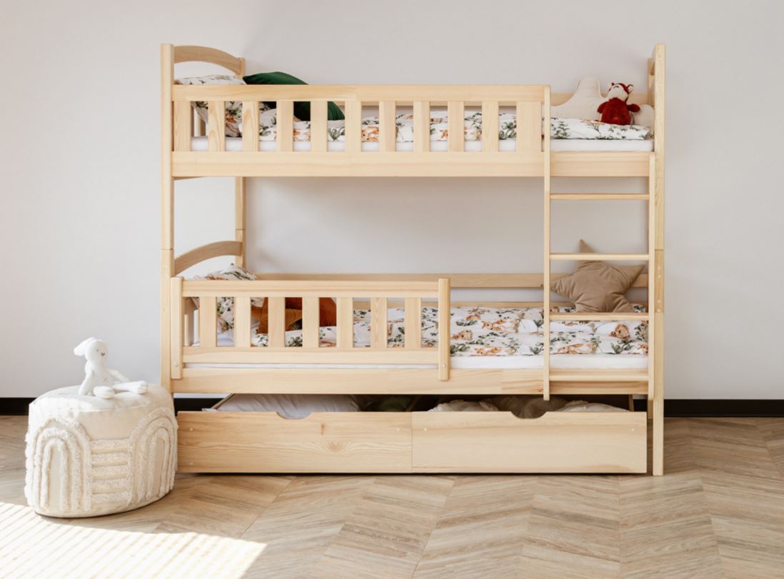 Unser Etagenbett IGNAŚ wurde mit viel Liebe zu jedem, selbst kleinsten Detail angefertigt. Dank der abgerundeten Kanten werden Verletzungen selbst bei den verrücktesten Spielen verhindert. Sowohl die obere als auch die untere Schlaffläche ist mit einem Holzgeländer ausgestattet, das die kleinen Kinder vor dem Herausfallen im Schlaf zuverlässig schützt.