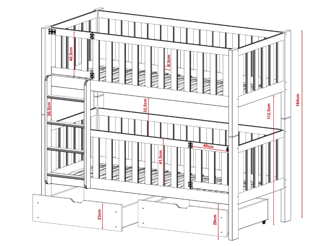 Unsere gemeinsame Priorität ist die Sicherheit der Kinder. Das Bett für Geschwister KSAWERY ist mit hohen Schutzgittern ausgestattet. Mit den vorderen Gittern lassen sich die Schlafflächen komplett schließen. Zugleich verfügen sie über ein Öffnungssystem, sodass das Kind selbständig das Bett besteigen und wieder verlassen kann. Des Nachts bleiben die Gitter zu. Dank dieser Funktion wird das Etagenbett KSAWERY zu einer Oase des sicheren Schlafs.