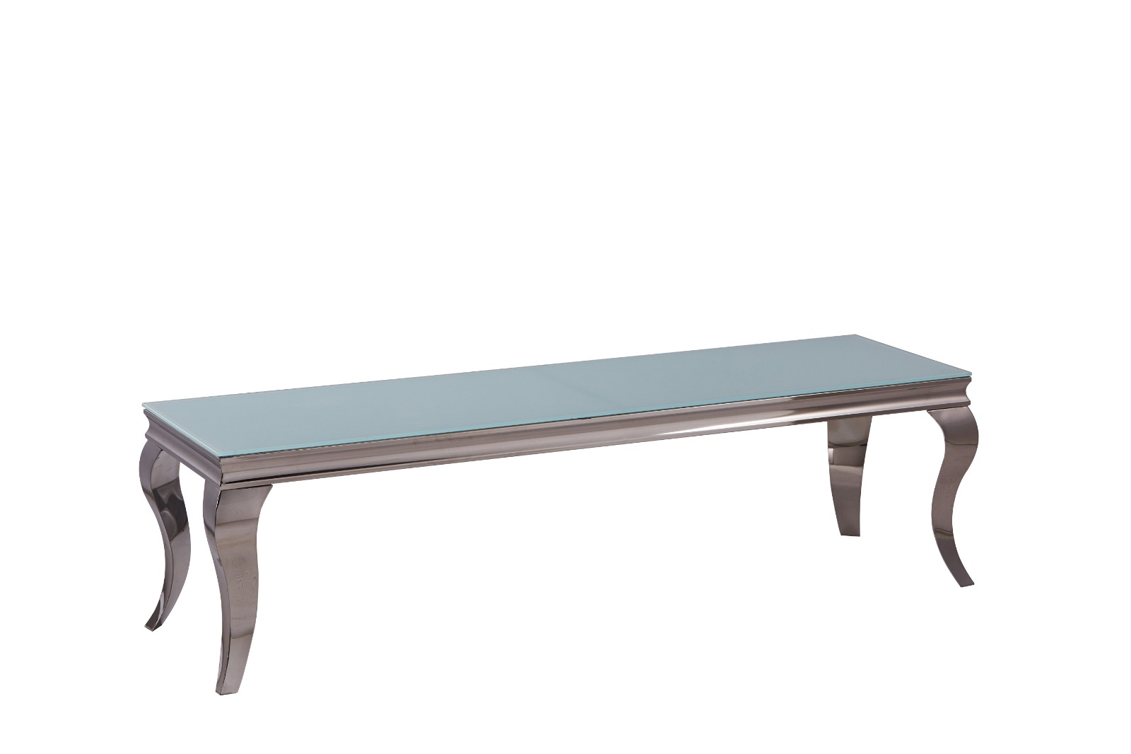 Designer Lowboard aus poliertem Edelstahl Chrom 160 x 45 x 45 cm – sehr Kratzfest – perfekt geeignet als Lowboard (Silber/Weiße Glasplatte)
