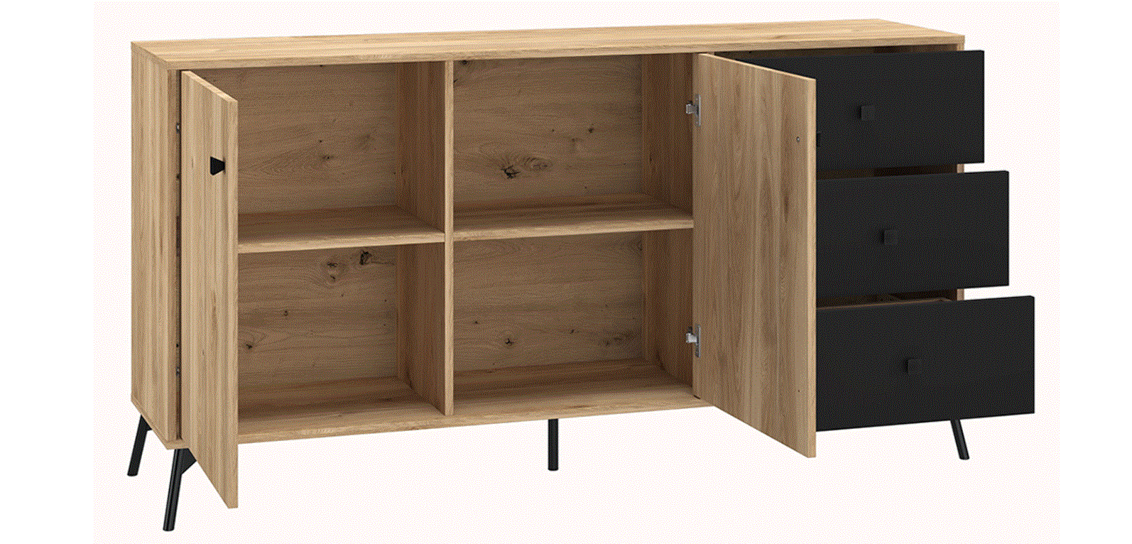 Das moderne und geräumige Sideboard in einer harmonischen Farbkombination bietet Ihnen viel Stauraum und lässt sich hervorragend kombinieren.Material: