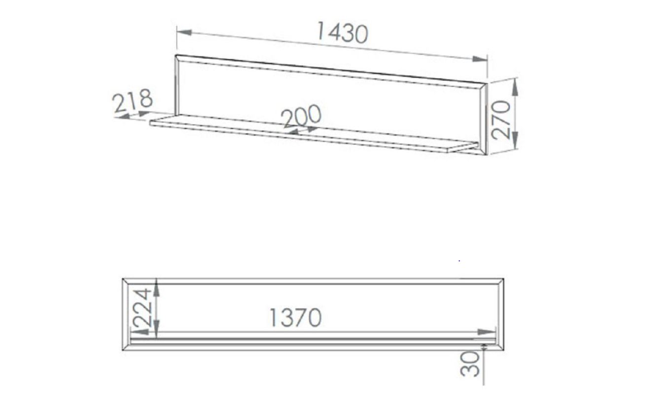 – B/T/H: 143 cm / 22 cm / 27 cm